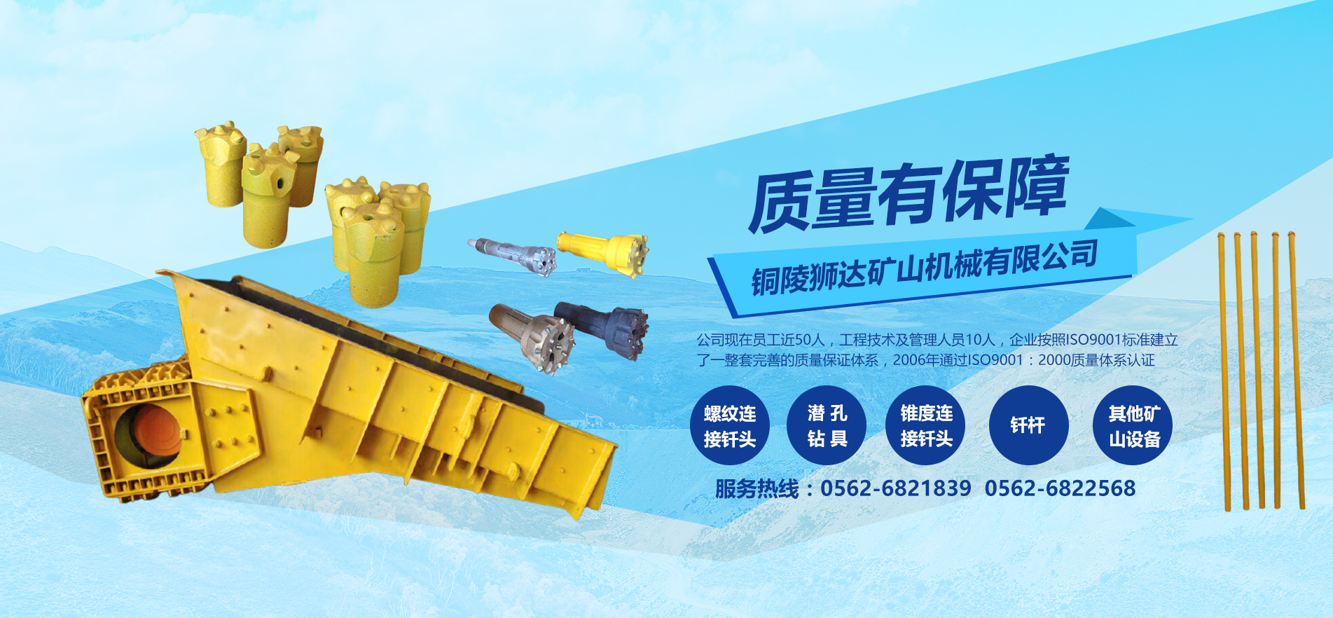 銅陵獅達礦山機械有限公司成立于2006年5月,公司位于安徽省銅陵市獅子山冬瓜山銅礦境內。主要生產經營緊固件、釬頭釬具、普通機械設備制造安裝、維修、白鐵制品、五金制品、錨桿、錨網、工程塑料等產品。